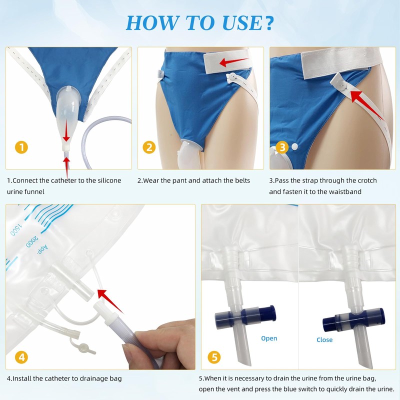 - Wearable Urine Collection Bag Set: Includes 1 urine collector, 1 pant, 1 catheters, a 2000ml bag for overnight use and a 1000ml bag for daytime, Both feature clear scale marks for easy monitoring and accurate measurement.