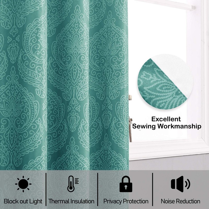 DWCN Ombre Blackout Curtains for Bedroom - Damask Patterned Thermal Insulated Energy Saving Grommet Curtains for Living Room, Set of 2 Gradient Window Curtain Panels, 52 x 63 Inches Long, Teal