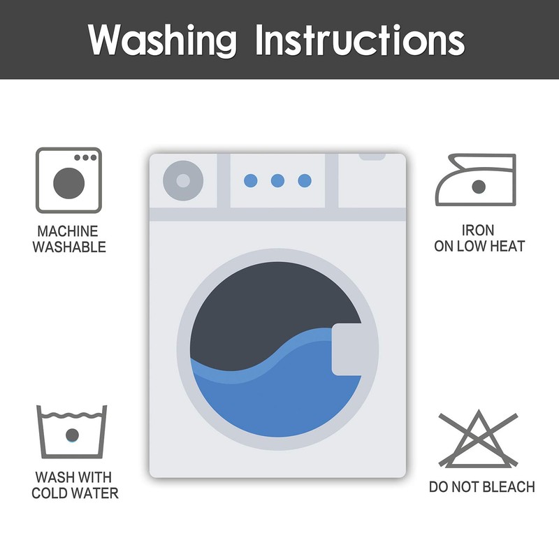- Machine wash cold, gentle cycle, do not bleach, tumble dry low, light iron as needed.