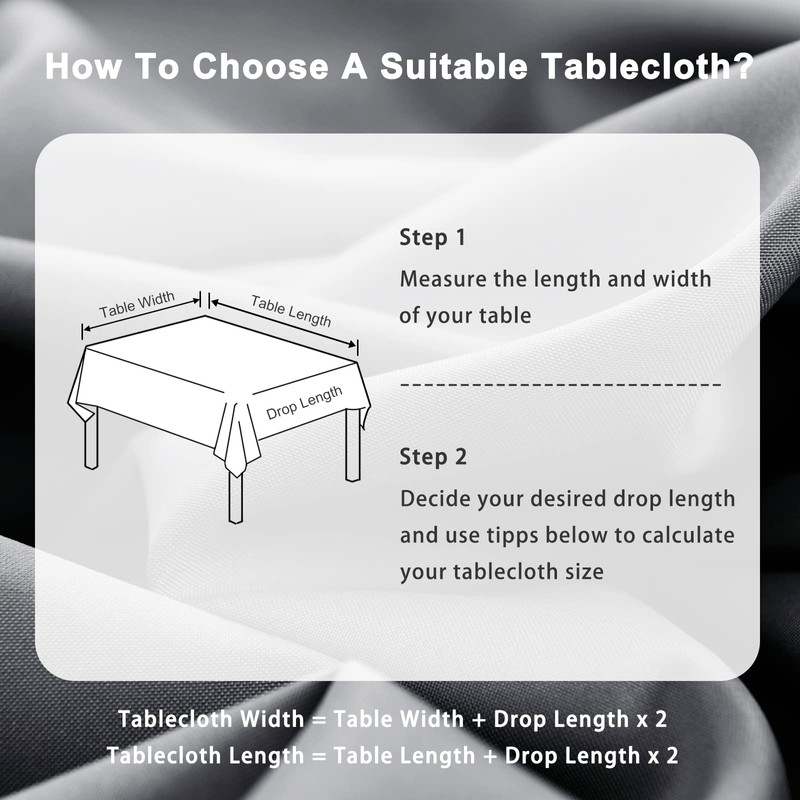 - HIGH QUALITY MATERIAL:These tablecloths are made of 100 percent high quality,durable polyester fabric.They are perfect for protecting and beautifying your tables.