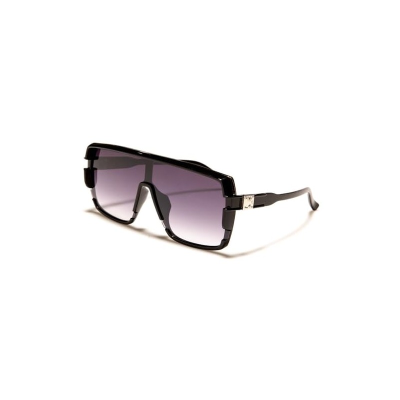Dweebzilla Bold Square Oversized One Piece Shield Lens Sport Aviator Sunglasses (Black & Silver Frame - Black Gradient Lens)