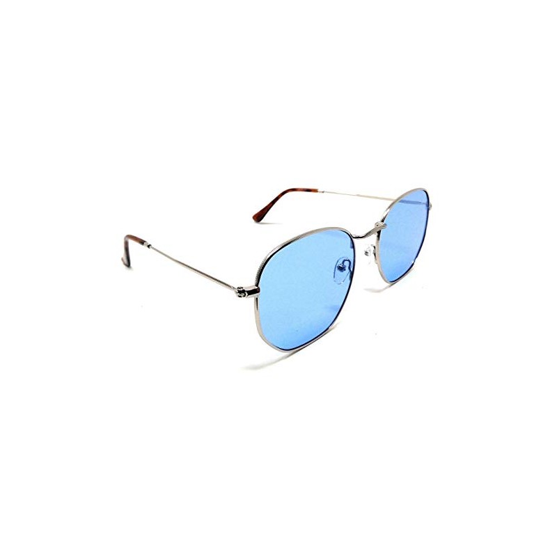 Dweebzilla Classic Wire Frame Aviator Sunglasses w/Flat Lenses (Metallic Silver & Tortoise Frame, Blue)