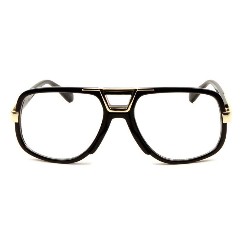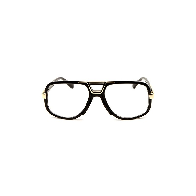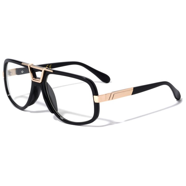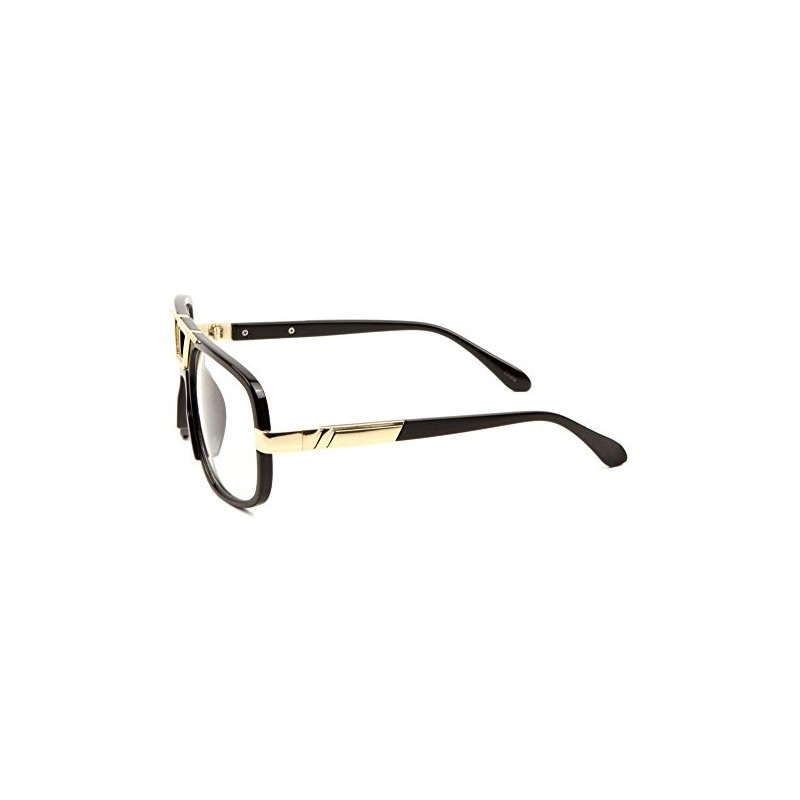 Dweebzilla Gazelle Deejay Square Retro Aviator Sunglasses (Black & Gold Frame, Clear)