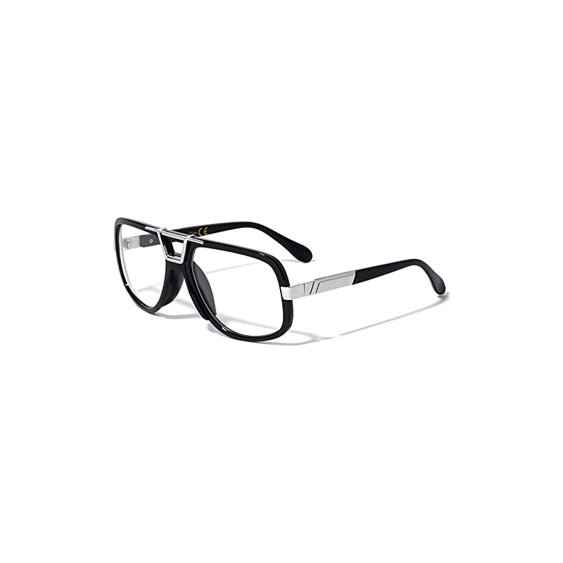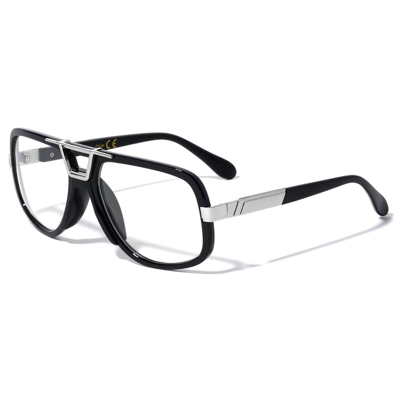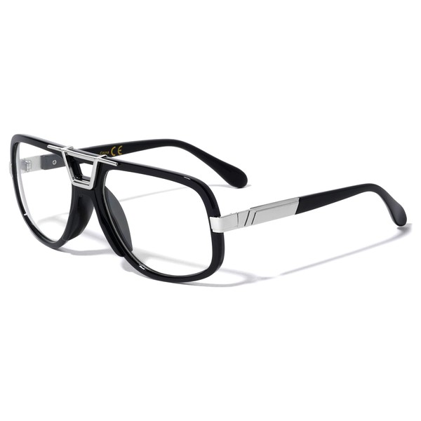 Dweebzilla Gazelle Deejay Square Retro Aviator Sunglasses (Black & Silver Frame, Clear)