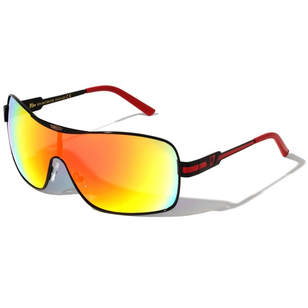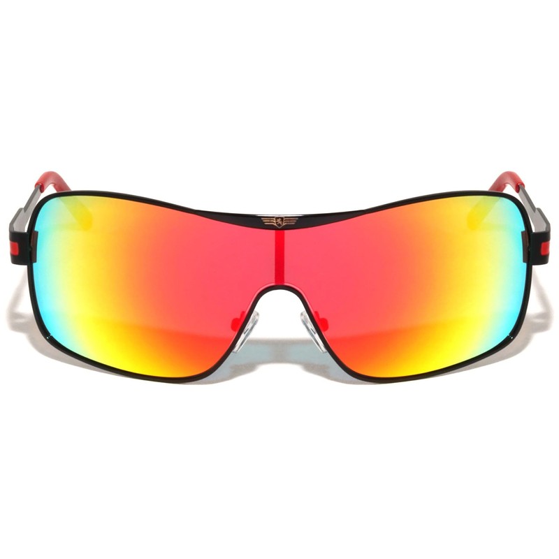Dweebzilla Khan Wrap Around Shield Aviator One Piece Iridium Flash Lenses Sunglasses (Black & Red Frame, Yellow Orange Flash Mirror Lens)