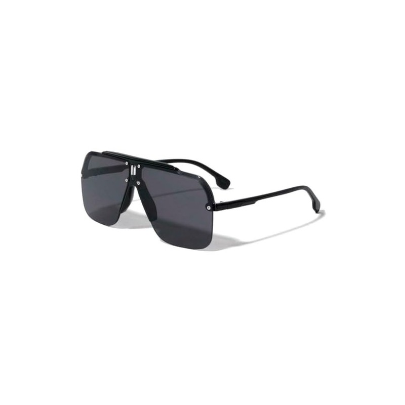 Dweebzilla Oversized Semi Rimless Square Pilot Aviator Sport Sunglasses (Glossy Black Frame - Black Super Dark Lenses)