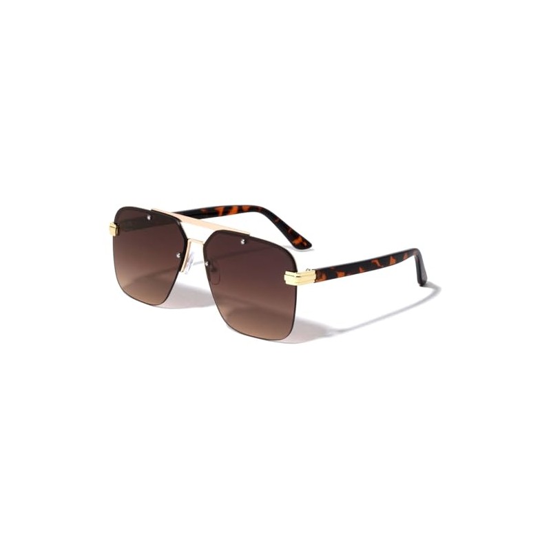 Dweebzilla Square Sport Semi Rimless Pilot Aviator Sunglasses (Tortoise & Gold Frame - Brown Gradient Lenses)