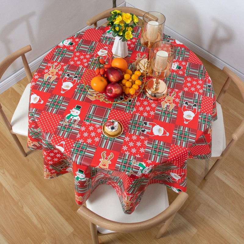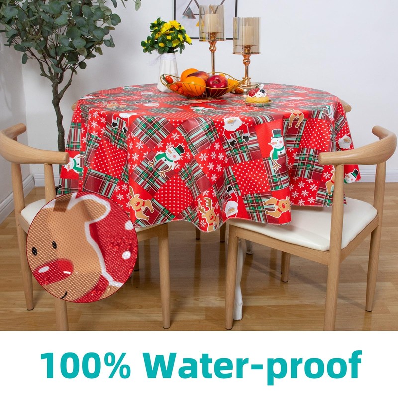 DwEllAid Red Christmas Tablecloth Disposable 60 inch Round Tablecloth Vinyl Tablecloth with Flannel Backing Oilcloth Tablecloth Waterproof Tablecloth