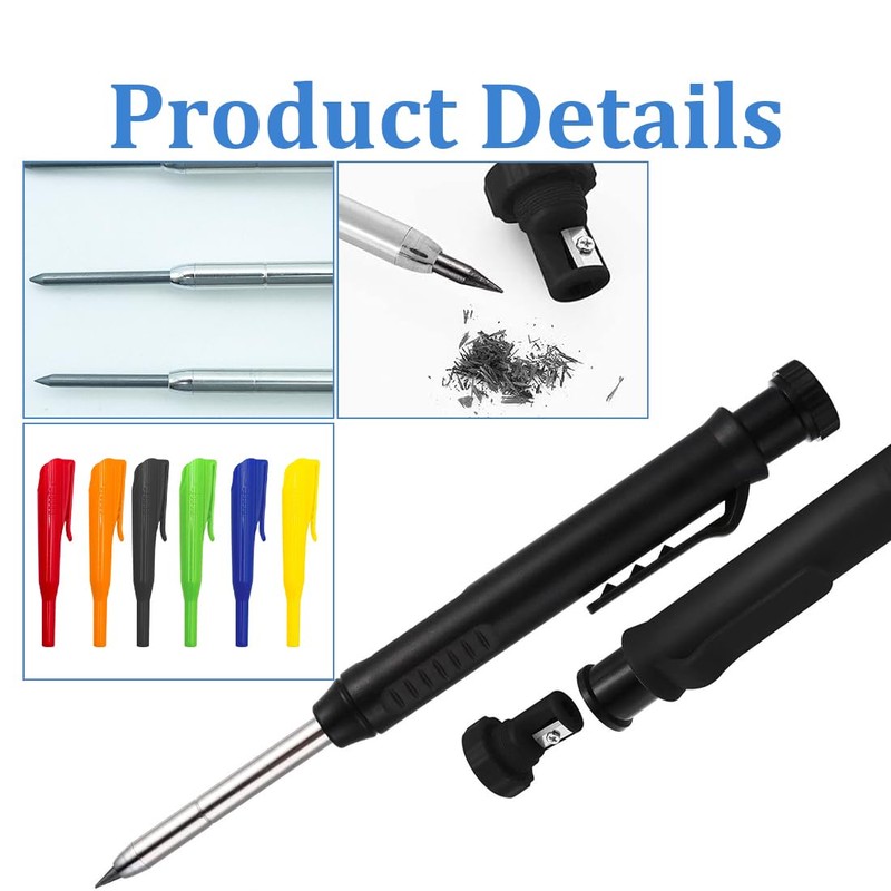 - Design with built-in pencil sharpener. Our deep hole carpenter's pencil comes with a built-in mini pencil sharpener that makes sharpening a breeze. With this feature, you never have to worry about losing your pencil sharpener again, and your pencils will always have a sharp and precise tip for detailed work. Thanks to its compact design, the sharpener can also be conveniently stored on the pencil to save space.