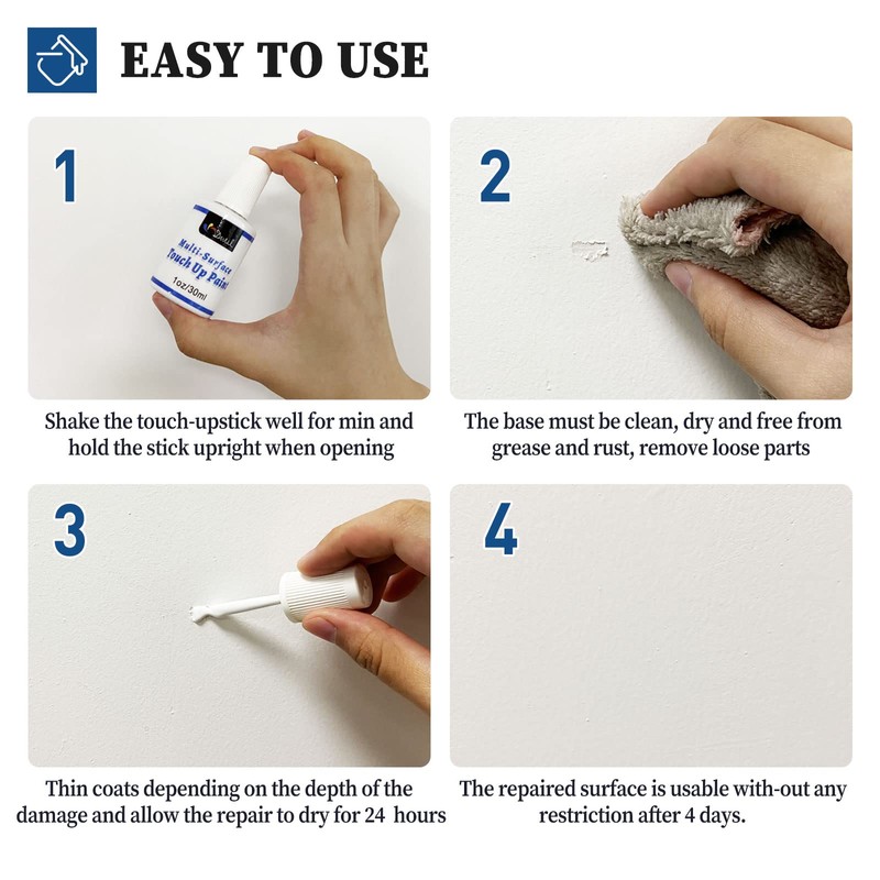 - Superb Adhesion: This touch up paint adheres to various surfaces like walls, trim, doors, cabinets, blinds, windows, furniture, and appliances, enabling easy repair of scratches, stains, chips, spots, yellowing, and other paint imperfections