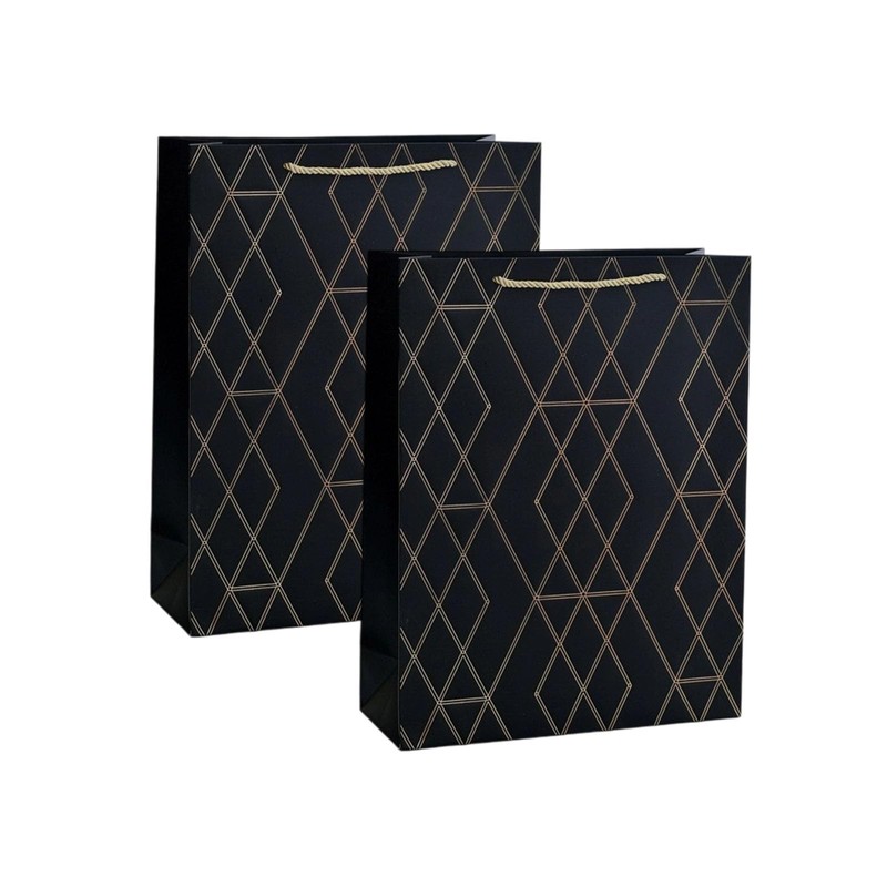 DWUENT 23x18cm Black Foiled Gift Bags 2pcs - Medium Birthday Present Totes with Deep Embossed Design (110g)