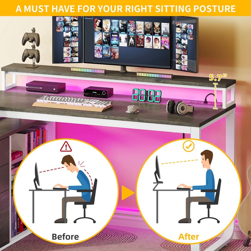 - Cool LED Light Strips: Our L-shaped desk features a beautiful RGB LED light strip, flexibly controlled by a phone app or remote control, and you can customize any color you like via app. Plus, choose from various modes including music sync, built-in Mic and timer functions to enhance the mood and inspire creativity while working