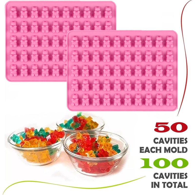 - Gummy Bear Candy Mold Dimensions: each tray measures 7.4 x 5.4 x 0.39 inches and each candy mold has 50 mini bears. Please note the size, each bear measures 1 ml.