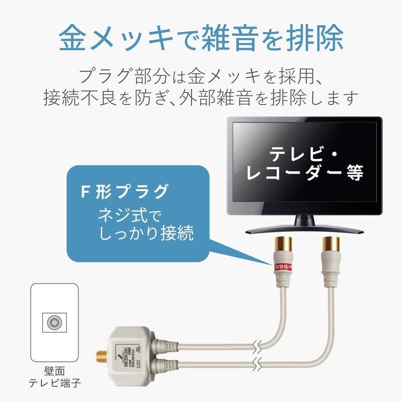 • Splitter with output cable Separate TV radio waves into UHF and Satellite broadcasts