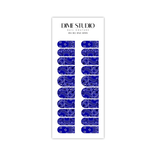 DXH NAIL CO Royal Blue Classic Bandana Nail Decals Water Transfer Paisley Nail Wraps Manicure Accessories (30MM Shorty)