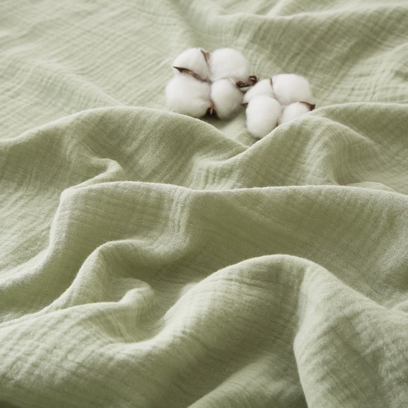 1. Material: 100% cotton. The fabric is light, soft to the touch, breathability and moisture absorption. Muslin bedding made of pure cotton material. The use of natural materials gives this bedding set a comfortable sleeping experience.