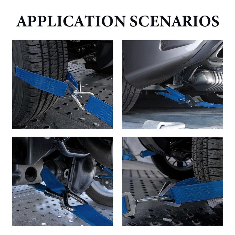 - 【Wide Application】: Whether securing cars, trailers, or other heavy loads, the tie-down strap offers universal compatibility for various applications. Its versatility makes it an essential tool for professional haulers, mechanics, and anyone requiring reliable vehicle transport solutions.