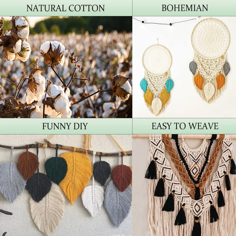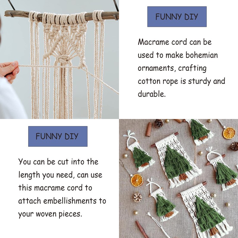 - Fun DIY: long enough macramé yarn can be cut to the length you need. -With this cotton yarn, you can attach decorations to your fabrics and simply add ribbons, beads and other decorative materials. The macrame cord feels very soft and is not easy to break. You can search for "macrame yarn" on many websites, many people will share their knitting process and their results, this is a good choice.