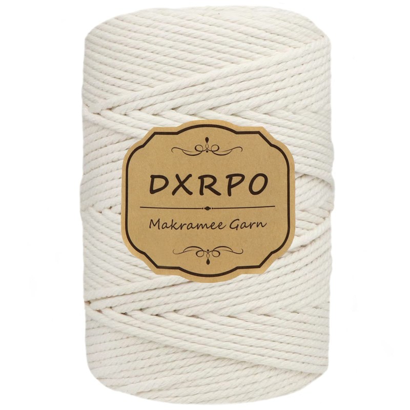 DXRPO Macrame Yarn 4 mm x 120 m, Natural Macrame, Cotton Yarn Macrame Cord, Cotton Cord Used Wall Hanging, Macrame Hanging Basket, DIY Craft Plant Hanger, Boho Decoration, Beige