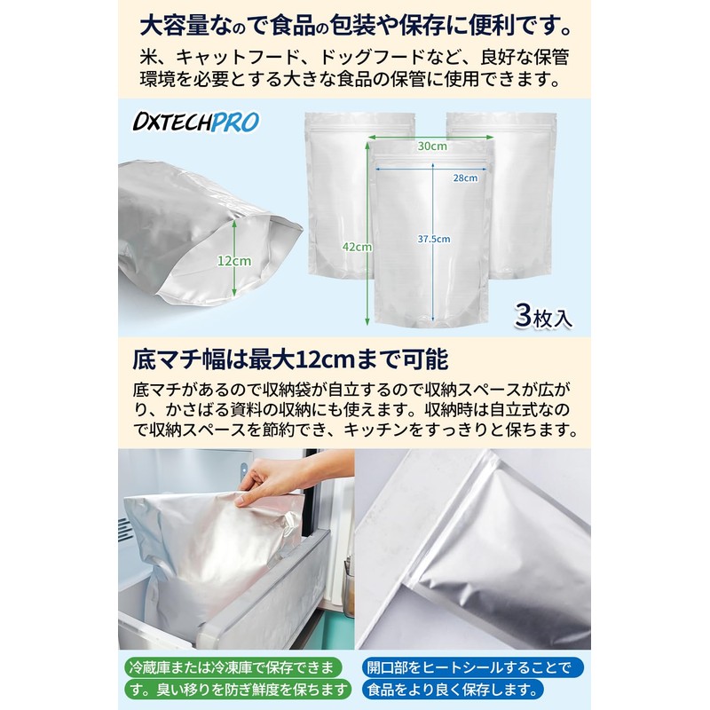 DXTECHPRO Rice Storage Bag, 11.0 lbs (5 kg), 11.8 lbs (30 cm) x 16.5 inches (30 cm) x 16.5 inches (42 cm), 3 Pieces with Zipper, Blackout Bag, Rice Storage Bag, Vacuum Storage, Rice Storage Container,