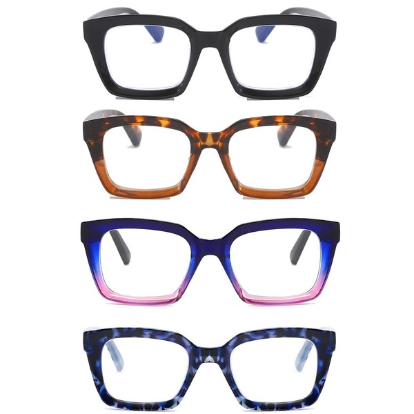 DXYXYO Reading Glasses 4.0 Women Blue Light Blocking Oversized Square Computer Readers 4 Pack Fashion Oprah Style