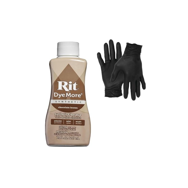 Dye – Rit Synthetic Liquid Fabric Dye for Crafting, Clothing, and Décor – 7 oz. Bottle – with Artisx Nitrile Gloves Included (Chocolate Brown)