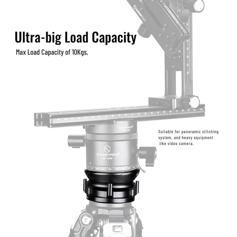 - Ultra-big load capacity: Hemisphere design, maximized contact area with the base for bigger load capacity compared with other ballheads. Suitable for panoramic stitching system, and heavy equipment like video camera. Max load capacity of 10 KG;