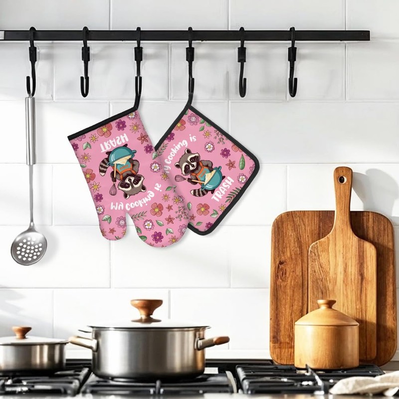 DYJYBMY My Cooking is Trash Funny Oven Mitts and Pot Holder Set, Cute Racoons Kitchen Gadgets for Women, Housewarming Gifts for Chef Hostess Coworker, Birthday Gifts for Mom Aunt Sister BFF Friend