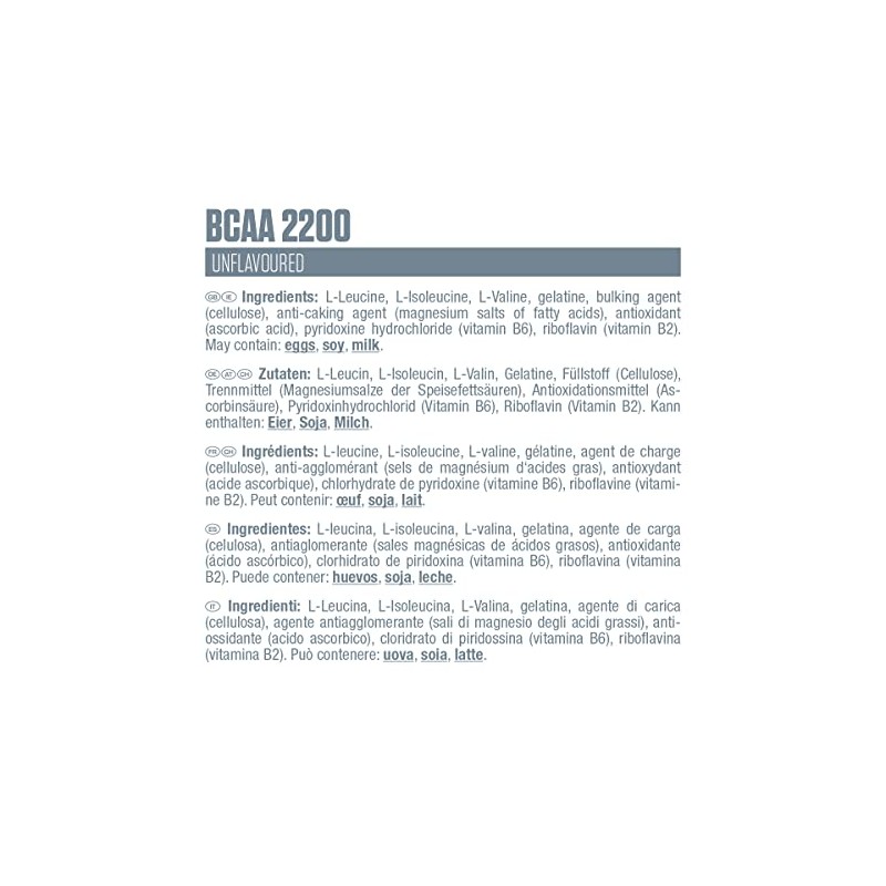 Product DescriptionYour metabolism stays elevated after strength training and stimulates muscle protein development. Amino acids are the building blocks of these proteins. Branched-chain amino acids (BCAAs) are among the nine essential amino acids that cannot be produced by the human body independently, which is why they have to be obtained from food. The BCAAs L-leucine, L-isoleucine and L-valine make up around 20C35% of human muscle protein. Dymatize? BCAA powder has a neutral taste and can be taken with water or a drink of your choice in the morning or before or after training. It contains a 2:1:1 ratio of these three essential amino acids plus vitamins B2 (Riboflavin) and B6. Vitamins B2 and B6 help reduce tiredness and fatigue. One serving contains 2.2 g of the essential amino acids L-leucine, L-isoleucine and L-valine. It is vegan, gluten free and rich in vitamins B2 and B6.IngredientsL-Leucine, L-Isoleucine, L-Valine, gelatine, bulking agent (cellulose), anti-caking agent (magnesium salts of fatty acids), antioxidant (ascorbic acid), pyridoxine hydrochloride (vitamin B6), riboflavin (vitamin B2). May contain: EGGS, SOY, MILK.DirectionsTake 4 capsules daily with sufficient liquid C e.g. in the morning, before or after training.Safety WarningThis food supplement should not be used as a substitute for a varied diet. A balanced diet and a healthy lifestyle are important. Do not exceed the recommended daily intake. Keep out of reach of young children.Manufacturer Contact InformationActive Nutrition International: C/O TTOOltd, PO Box 5593, Manchester M61 0UP, United Kingdom; Phone +44-(0)7538602351; www.dymatize.com