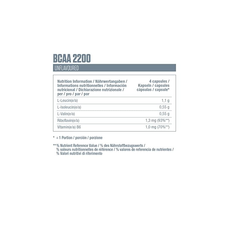 - BCAAS FROM DYMATIZE contain 2.2 g of the essential amino acids L-leucine, L-isoleucine and L-valine per serving, which consists of four capsules, and are also rich in vitamins B2 and B6