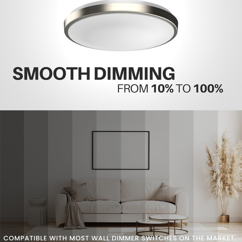 DYMOND 11" LED Flush Mount Ceiling Light Brushed Nickel Dimmable Adjustable Color Temperature Cozy Warm to Cool White Daylight 2700K 3000K 3500K 4000K 5000K Selectable 5CCT (11 inches)