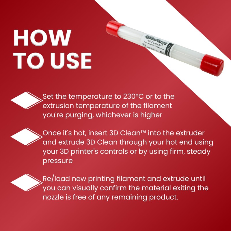 - CLEAN YOUR 3D PRINTER with Dyna Purge, a non-chemical, non-abrasive thermoplastic compound that's safe for both the operator and the printer.