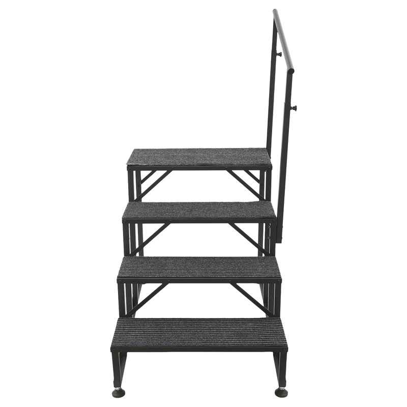 DYNAMI RV Stairs 4 Step Ladder, Steel Porch Steps with Handrails and Anti-Slip Pedals,Adjustable Foot Pads Portable Step Stool,for Camper,Swimming Pools(Single Sided Handrail w/Anti-Slip Mat)
