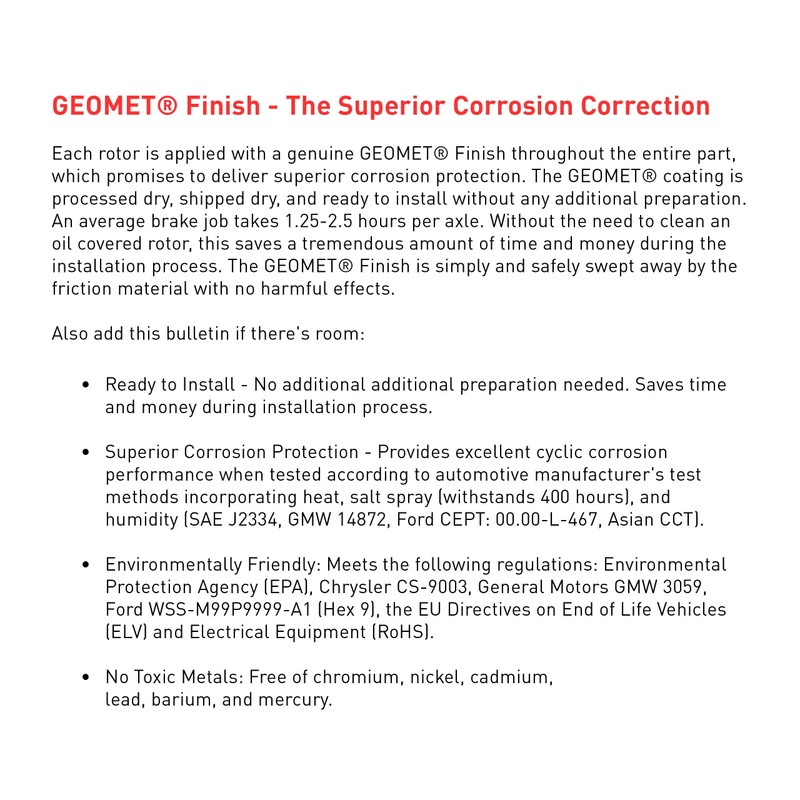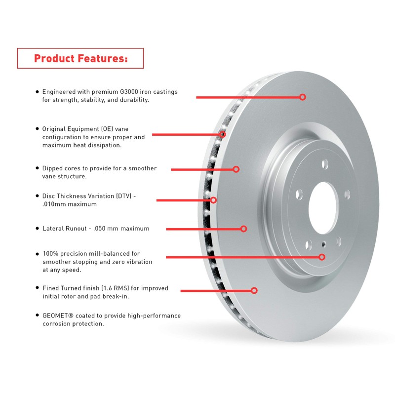 - Front Brake Rotor Replacement: Includes (1) Dynamic Friction Company Front Hi-Carbon Alloy GEOMET Brake Rotor for improved braking performance