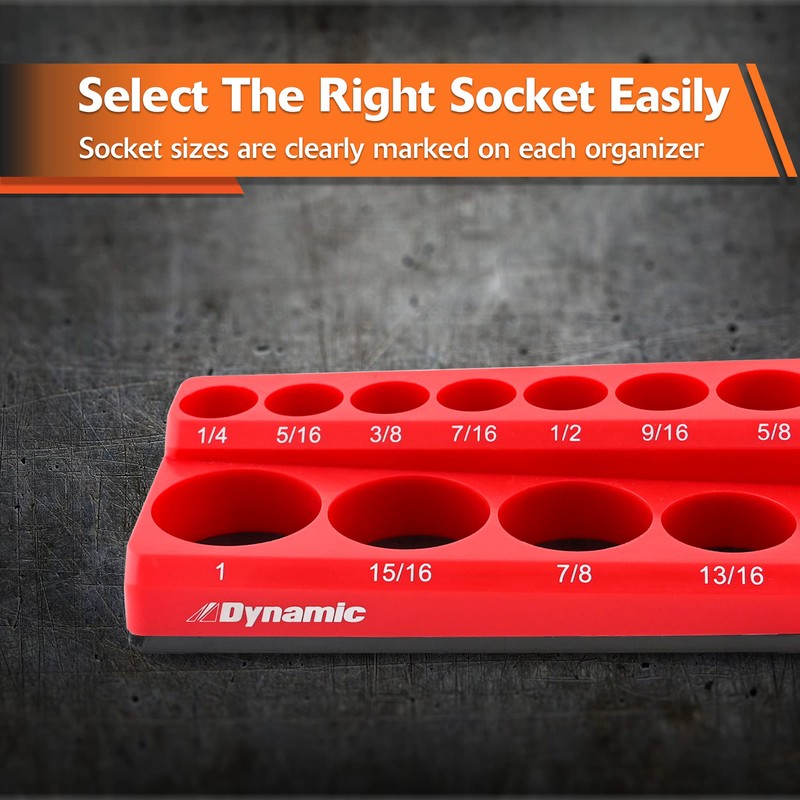 - This must have tool box organizer set allows professionals to organize and access their socket collection with ease, thus saving time and getting the job done easier. These magnetic socket organizers hold regular and deep chrome sockets (see images for compatible sizes) , as well as Dynamic-branded impact sockets (impact sockets from other brands might not fit).