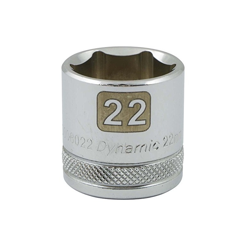 Dynamic Tools D008022 3/8" Drive 6 Point Metric Socket with 22mm Standard Length, Chrome Finish