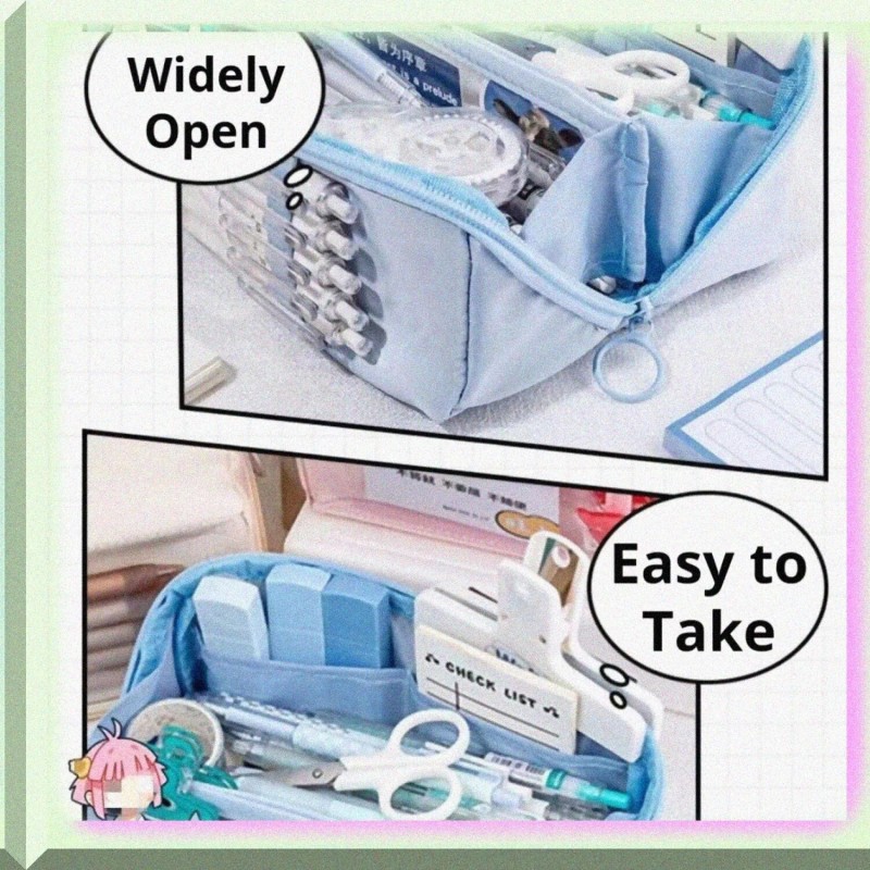 (D) **Portable & Convenient**: Despite its large capacity, this pencil case is lightweight and easy to carry. It fits perfectly in your backpack or handbag, making it the ideal companion for school, work, or travel. Plus, the sturdy zipper ensures that your items stay secure on the go.
