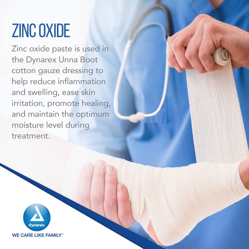 • SUPERIOR QUALITY: The Dynarex Unna Boot Bandage is composed of high-quality components including cotton gauze and zinc oxide, that are designed to deliver a superior product.