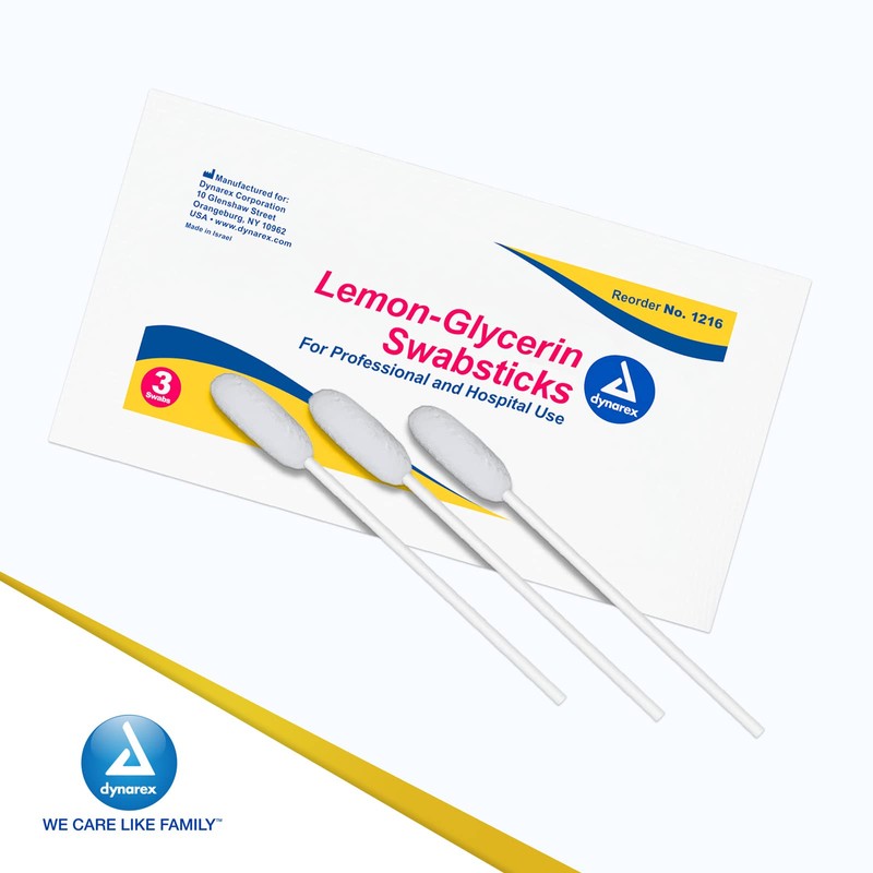 - EFFECTIVE RELIEF AND MOISTURE: The Dynarex Lemon Glycerin Swabsticks promote effective relief and moisture to dry mouths with their pleasant-tasting flavor, soothing and refreshing mouths of patients with restricted oral intake. Alcohol Free