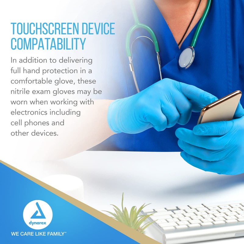 - TOUCHSCREEN DEVICE COMPATABILITY: In addition to delivering full hand protection in a comfortable glove, these nitrile exam gloves may be worn when working with electronics including cell phones and other devices.
