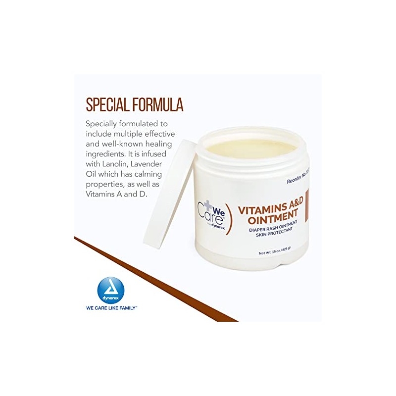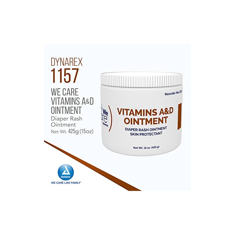 Dynarex Vitamins A & D Ointment, Ointment with Vitamin A and Vitamin D Skin Protectant, for Diaper Rash and Discomfort, White, 2 – 15 oz Jars of Dynarex Vitamins A & D Ointment