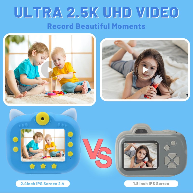 - 【48 MEGAPIXELS AND 2.5K DISPLAY】The digital camera features 48MP for photos, it is ideal for children to develop their taste for photography and have hours of guaranteed fun thanks to this Children's Digital Camera.