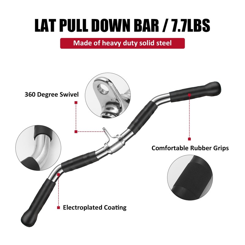 - ✅Lat Curl Pull Down Bar - This bar can be extremely beneficial in building upper body strength especially in strengthening the muscles of the shoulder, latissimus dorsi, biceps and infraspinatus. in order to put up a good performance in sports like rowing.