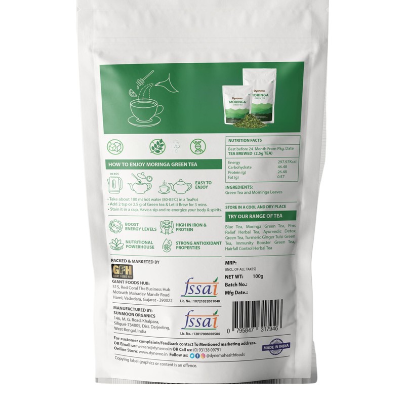 Dynemo MORINGA GREEN TEA , Pure Organically Grown Original Green Leaves Moringa loose leaves delicious tea with the goodness of moringa leaves Resealable Ziplock Pouch, Tasty moringa green tea. (0.55 lb)