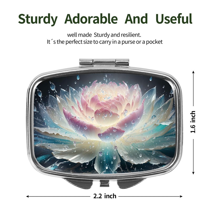 Dynippy Pill Case Pill Box with Mirror Pocket 2 Compartment Medicine Case Vitamin Pill Organizer for Pocket Purse and Travel Gifts Rectangle Silver - Flower Water