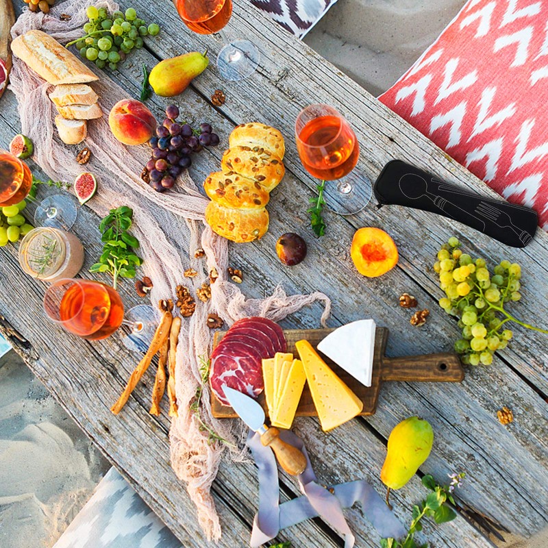 DynkoNA Travel Flatware Set of 2, 6 Pieces Camping Silverware Set (Black)