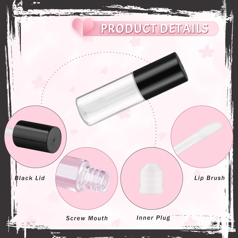 - Bulk Set - A total of 50 30ml empty lip gloss tubes with brushes,available in black and pink lip-caps,are ideal for beginners practicing homemade lip gloss samples.