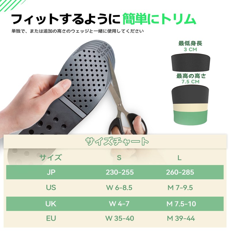 DynWalker Insole, Height Up, Secret Insole, Maximum 3.0 inches (7.5 cm), Breathable, Shock Absorption, Everyday Use, One Pair 3 Layers, Men's, Women's, Leather Shoes, One Size Fits Most, S