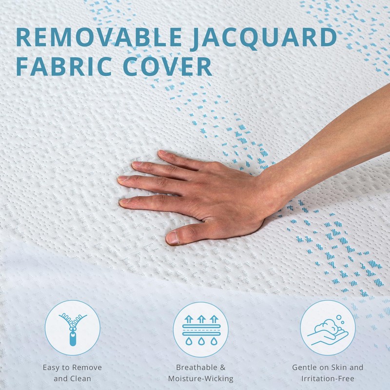 • BREATHABLE & REMOVABLE COVER: Crafted from soft, skin-friendly fabric, the cover allows for excellent airflow to keep you cool and comfortable all night. It’s easily removable and machine washable, making it simple to keep your mattress clean and fresh with minimal effort.