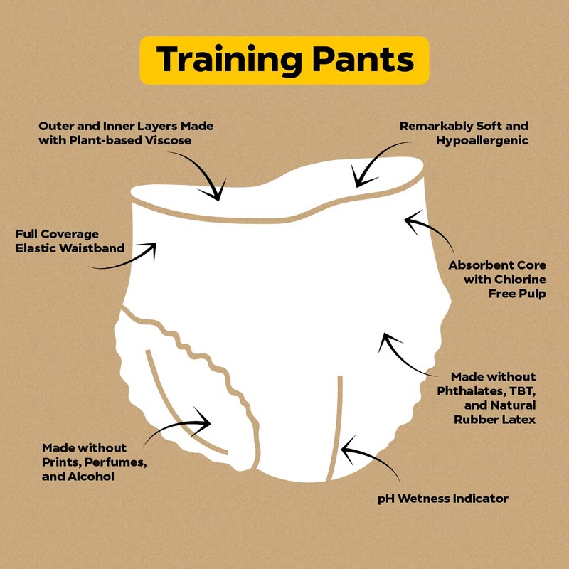 - RESPONSIBLE & MADE WITH PLANT-BASED MATERIALS:: Our infant training pants are parent’s choice because they are made without alcohol, chlorine, latex, perfumes, PVC, lotions, TBT, parabens, sulphates, & phthalates. They are unprinted, unscented, hypoallergenic, and cruelty-free to protect the next generation.